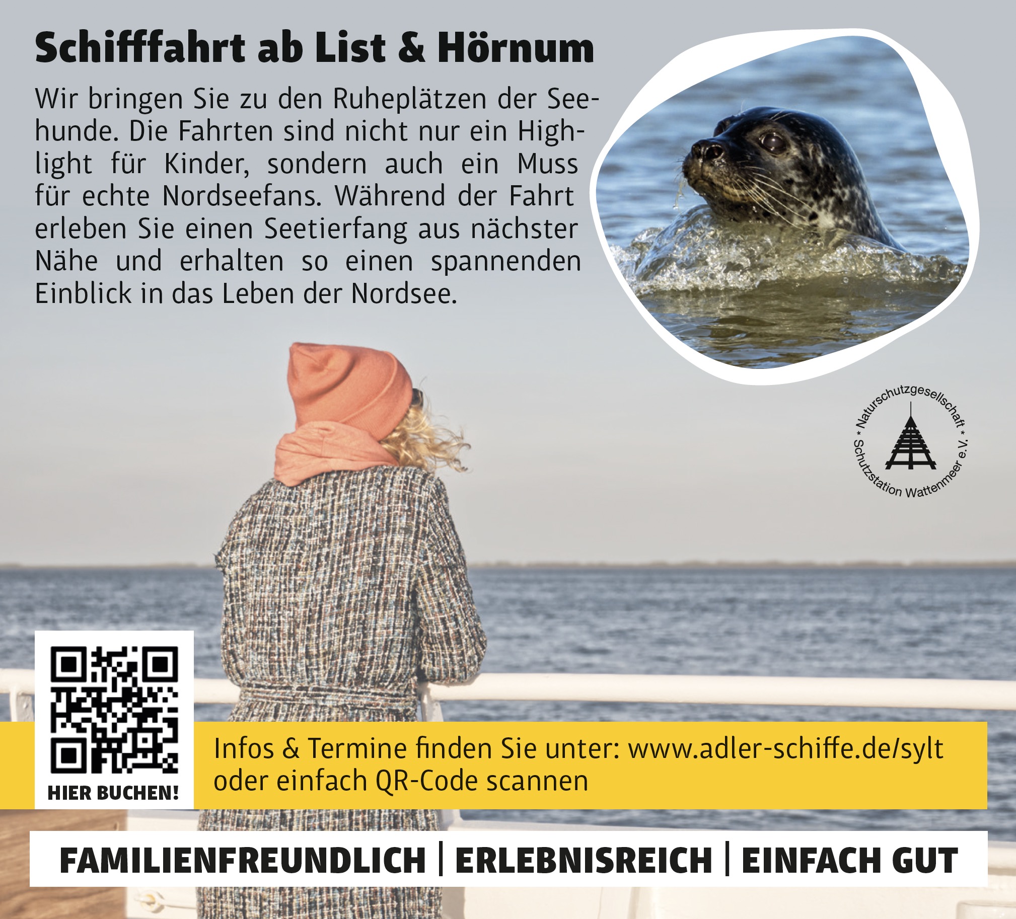 In der Nebensaison geht es regelmäßig mit den urigen Kuttern „Gret Palucca“ und „Rosa Paluka“ ab List auf Sylt zu den Ruheplätzen der Seehunde. Während der Fahrt wird ein Schleppnetz zu Wasser gelassen und Sie bekommen beim Seetierfang durch unsere Seemänner an Bord einen spannenden Einblick in das Leben der Nordsee. Bestaunen Sie Muscheln, Krebse, kleine Fische und Seesterne! Natürlich werden die Lebewesen anschließend wieder in die Freiheit entlassen.